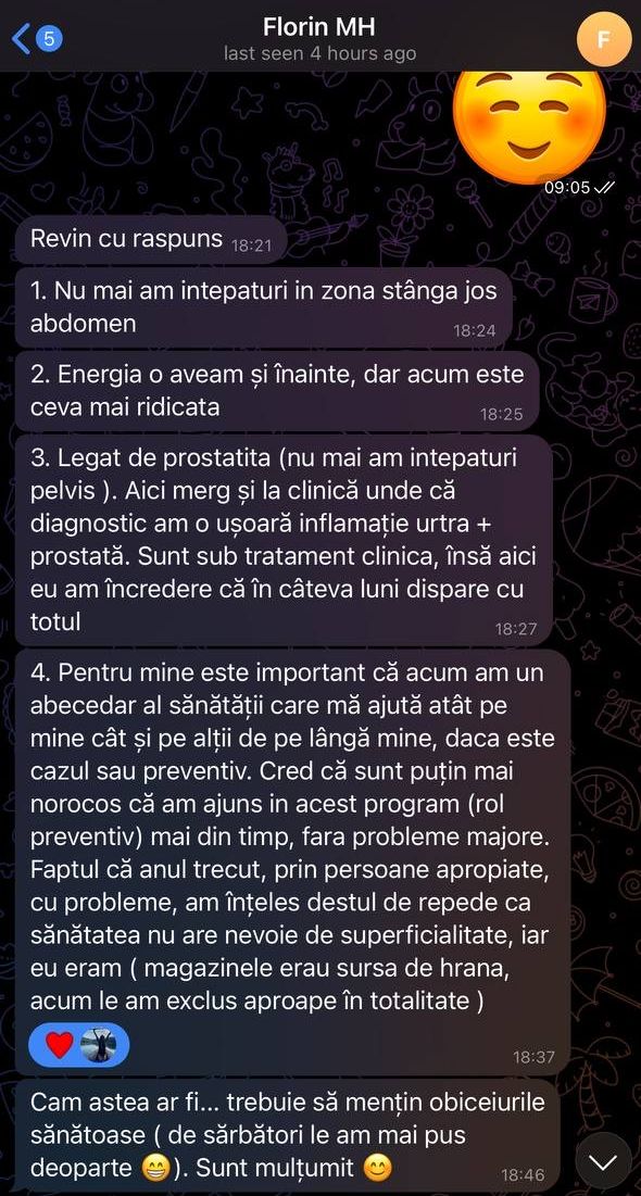 Ali - "Am început să mănânc produse de calitate, iar lucrul acesta s-a observat într-o digestie bună, stare de spirit bună și fără poftă de dulce."